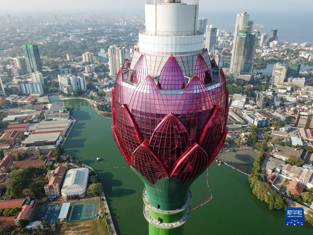 這是無人機航拍的斯里蘭卡科倫坡蓮花電視塔(2019年4月10日攝)?苽惼律徎娨曀侵兴箖蓢凇耙粠б宦贰苯ㄔO(shè)中的重要合作項目。新華社記者 郭磊 攝