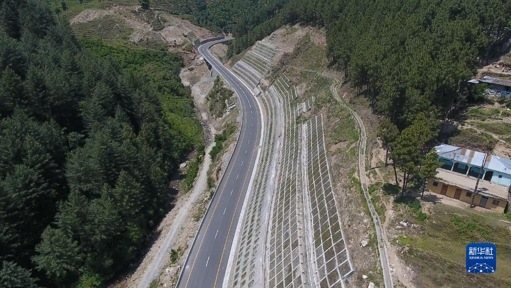 這是2020年7月28日拍攝的巴基斯坦喀喇昆侖公路二期項目曼塞赫拉至塔科特二級公路段?龉范陧椖繉⒅邪陀颜x公路向南延伸,融入巴南北交通干線。新華社發(fā)(中國交通建設(shè)股份有限公司供圖)