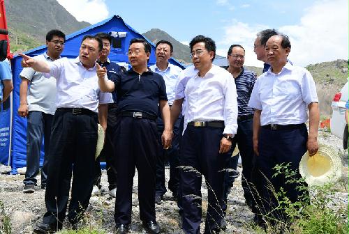 隨后,唐仁健來到南峪鄉(xiāng)江頂崖泥石流滑坡現(xiàn)場,查看滑坡體處置情況,詳細(xì)了解應(yīng)急監(jiān)測工作和綜合治理方案。他強(qiáng)調(diào),江頂崖泥石流滑坡體處置事關(guān)當(dāng)?shù)厝罕姲参,黨中央、國務(wù)院高度關(guān)注,社會各界高度關(guān)切。甘南州、舟曲縣和省發(fā)改、國土、交通、水利等部門要按照省委省政府部署和專家組意見,統(tǒng)籌調(diào)配力量資源,科學(xué)高效組織實(shí)施,加快落實(shí)綜合治理方案。要利用今年的枯水期,對滑坡體進(jìn)行全面有效處置,盡可能消除后患,為今后安全度汛打好基礎(chǔ)。唐仁健指出,白龍江沿岸地質(zhì)災(zāi)害隱患點(diǎn)多,要全面排查評估,分出輕重緩急,針對具體情況,采取有效處置措施,先排險應(yīng)急,再除患治本。要利用降雨間隙,抓緊疏浚河道,科學(xué)導(dǎo)流,減小和消除水流對護(hù)岸、堤壩、路基的直接沖擊,確保堤防和道路交通安全。