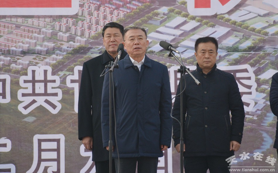 王軍代表市四大組織對(duì)天水經(jīng)濟(jì)技術(shù)開發(fā)區(qū)冀城產(chǎn)業(yè)園基礎(chǔ)設(shè)施項(xiàng)目開工建設(shè)表示熱烈祝賀。他說,建設(shè)開發(fā)區(qū)冀城產(chǎn)業(yè)園,是貫徹落實(shí)國務(wù)院《關(guān)于促進(jìn)國家級(jí)經(jīng)濟(jì)技術(shù)開發(fā)區(qū)轉(zhuǎn)型升級(jí)創(chuàng)新發(fā)展若干意見》、實(shí)現(xiàn)省委、省政府“打造千億元開發(fā)區(qū)”奮斗目標(biāo)、培育我市工業(yè)經(jīng)濟(jì)發(fā)展新的增長極的重大戰(zhàn)略舉措,對(duì)拓展開發(fā)區(qū)發(fā)展空間、優(yōu)化產(chǎn)業(yè)布局、促進(jìn)轉(zhuǎn)型升級(jí)、加快甘谷縣域經(jīng)濟(jì)發(fā)展、為甘谷群眾提供就業(yè)渠道等具有重要的戰(zhàn)略意義。開發(fā)區(qū)管委會(huì)要堅(jiān)持“產(chǎn)城融合發(fā)展”的理念,高起點(diǎn)規(guī)劃,高標(biāo)準(zhǔn)建設(shè),加快冀城產(chǎn)業(yè)園基礎(chǔ)設(shè)施建設(shè)進(jìn)度,加大招商引資力度,引進(jìn)更多更好的企業(yè)入園發(fā)展,爭(zhēng)取把冀城產(chǎn)業(yè)園建設(shè)成一流的園區(qū)。施工單位和監(jiān)理單位要精心組織、科學(xué)管理、安全施工、文明施工,高標(biāo)準(zhǔn)、高質(zhì)量完成工程建設(shè)各項(xiàng)任務(wù)。甘谷縣委、縣政府要從全市經(jīng)濟(jì)社會(huì)發(fā)展的大局出發(fā),加強(qiáng)對(duì)干部群眾的引導(dǎo)教育,加大征地拆遷和協(xié)調(diào)保障力度,全力支持產(chǎn)業(yè)園建設(shè)。市直有關(guān)單位要充分發(fā)揮職能作用,積極做好協(xié)調(diào)服務(wù),及時(shí)解決建設(shè)中遇到的各種困難和問題,為冀城產(chǎn)業(yè)園順利建設(shè)創(chuàng)造良好的外部環(huán)境。
