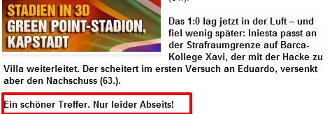 由于大部分德國媒體也都是看著ZDF的轉(zhuǎn)播進(jìn)行報道的。于是在賽后的德媒體報道中,都是以比利亞越位進(jìn)球作為噱頭進(jìn)行宣傳。這也顯示了德媒體在一定程度上也在為此前對德國隊(duì)的有利誤判造勢:并不光是德國占了便宜。
