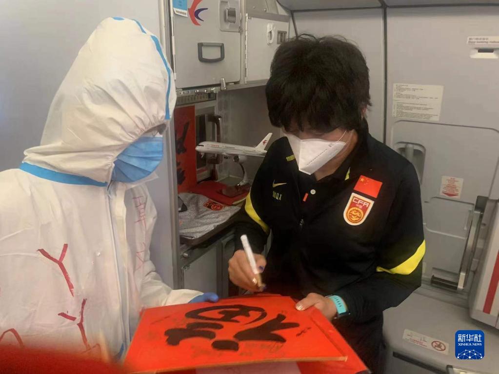 為了讓女足姑娘們“補(bǔ)過”好春節(jié),東航乘務(wù)組在客艙里貼上家人看球時(shí)題寫的福字和春聯(lián),營造濃厚的節(jié)日氛圍。自接到包機(jī)任務(wù)后,東航及時(shí)制定了周密的保障計(jì)劃,快速完成航權(quán)申請。