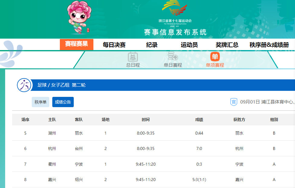 記者在浙江省第十七屆省運會官網上,查到了這場比賽的成績,麗水隊44:0勝湖州隊,也就是說,這場比賽是真實存在的。