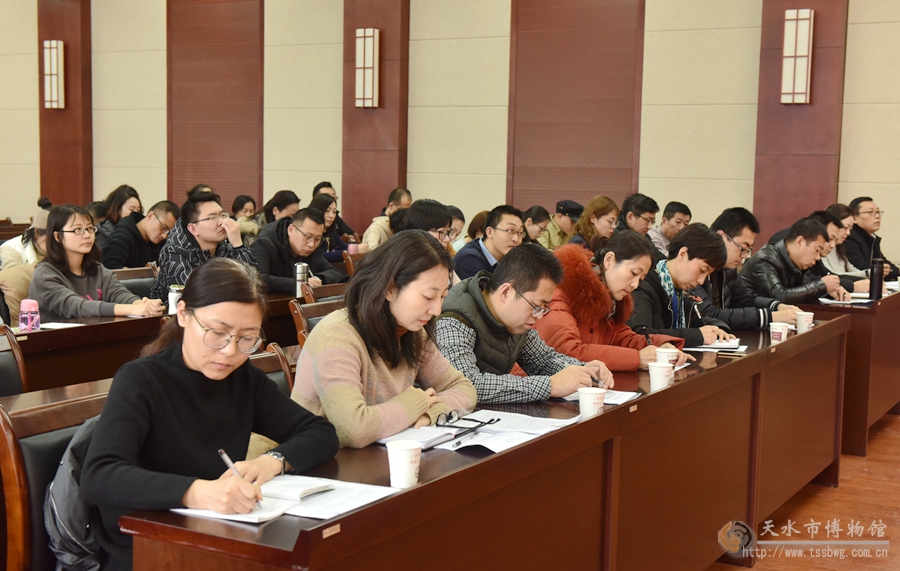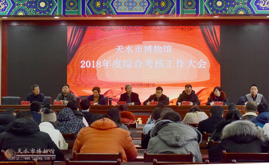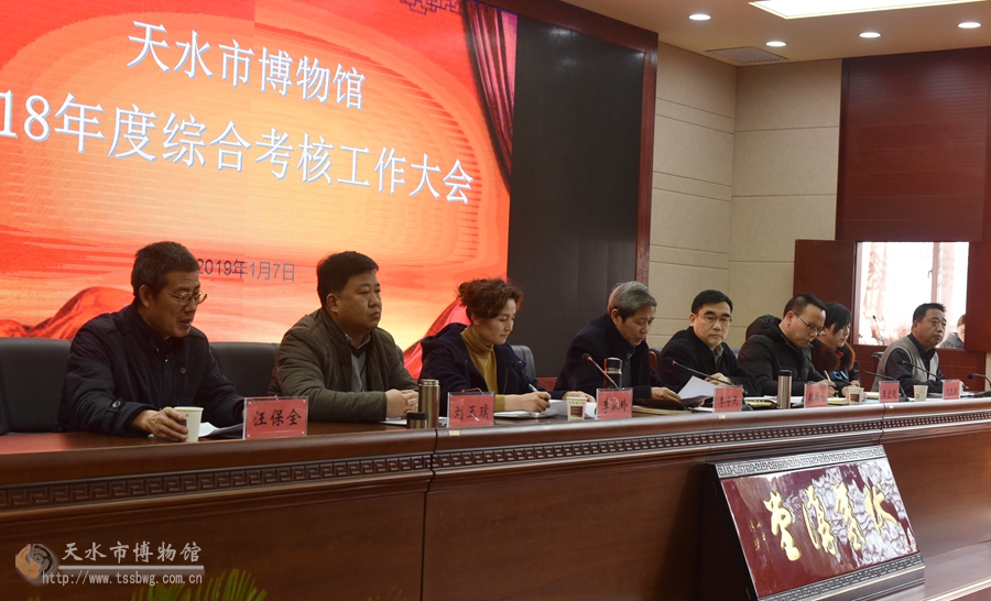 2019年1月7日下午,天水市博物館召開2018年度綜合考核工作大會。市文化和旅游局第一考核組組長、局黨組副書記魏國柱,考核組成員、機關黨委副書記王宏明,局人事科副科長虎凱麗,文物局副局長李淑玲一行4人參加考核,市博物館館長李寧民主持大會,副館長劉玉璞、管玉、汪保全出席會議,市博物館全體正式職工參加會議。