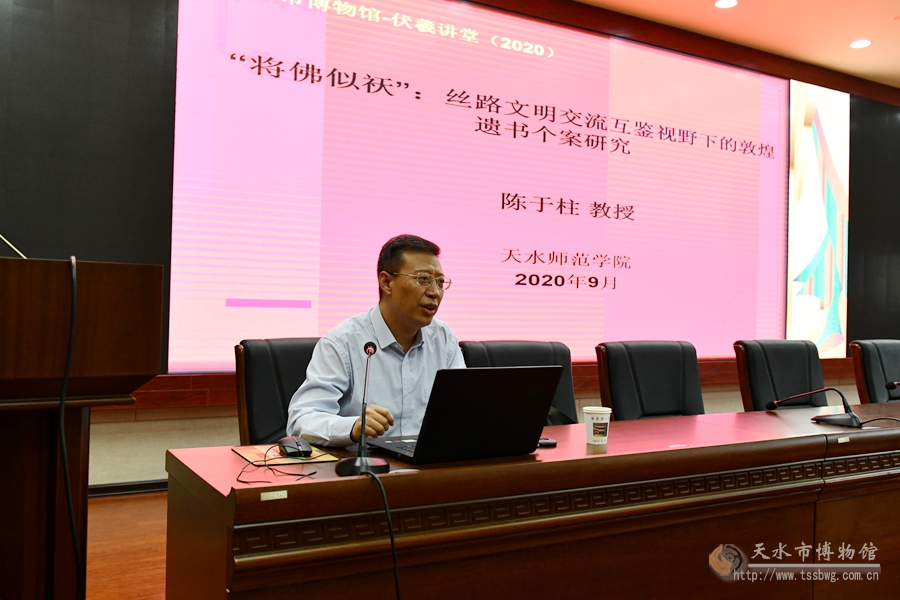 9月9日下午,天水市博物館、伏羲學(xué)院特邀天水師范學(xué)院歷史文化學(xué)院院長(zhǎng)、教授陳于柱來我館作題為《“將佛似祆”:絲路文明交流互鑒視野下的敦煌遺書個(gè)案研究》的專題講座。講座由天水市博物館館長(zhǎng)、伏羲學(xué)院院長(zhǎng)李寧民主持。博物館干部職工、天水師范學(xué)院師生及對(duì)歷史文化和敦煌學(xué)感興趣的社會(huì)各界人士100余人聆聽講座。