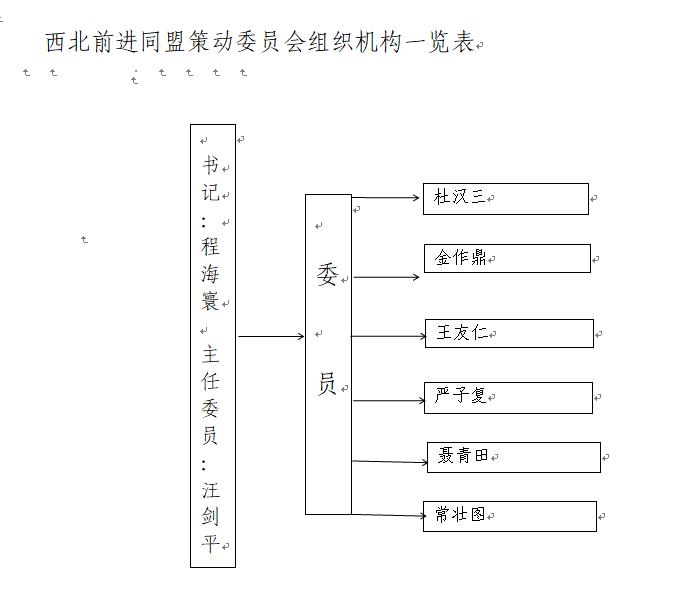 ▲西北前進(jìn)同盟策動(dòng)委員會(huì)組織機(jī)構(gòu)一覽表