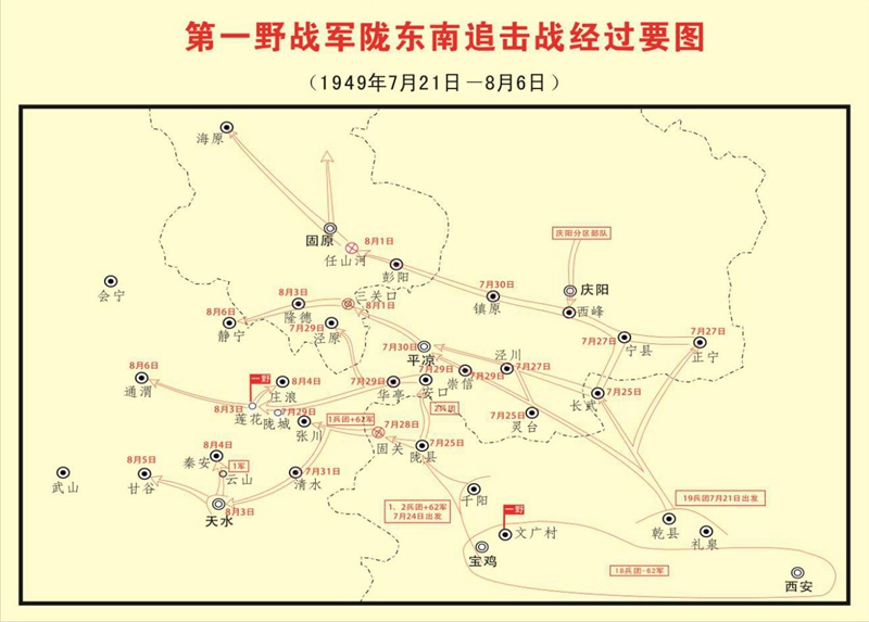 1949年8月初,解放軍第一野戰(zhàn)軍一兵團(tuán)逼近天水,兵臨城下。當(dāng)時(shí),天水城區(qū)黨組織向部隊(duì)提供了國(guó)民黨軍政編制、特務(wù)名單、軍庫(kù)等情報(bào),并對(duì)國(guó)民黨軍、政人員進(jìn)行登記。8月3日晨,一兵團(tuán)第7軍軍長(zhǎng)彭紹輝率20師一部由天水東門(mén)浩浩蕩蕩開(kāi)進(jìn)天水城,天水宣告解放。