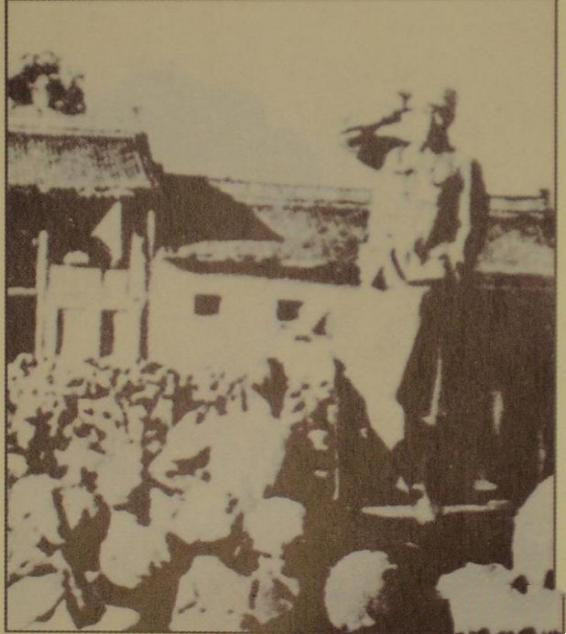 圖注:1949年8月1日,在清水縣體育場(chǎng)召開(kāi)的慶祝清水解放暨紀(jì)念“八一”建軍節(jié)大會(huì),王震同志在大會(huì)上作了建設(shè)新政權(quán)和向蘭州進(jìn)軍的動(dòng)員講話(huà)。