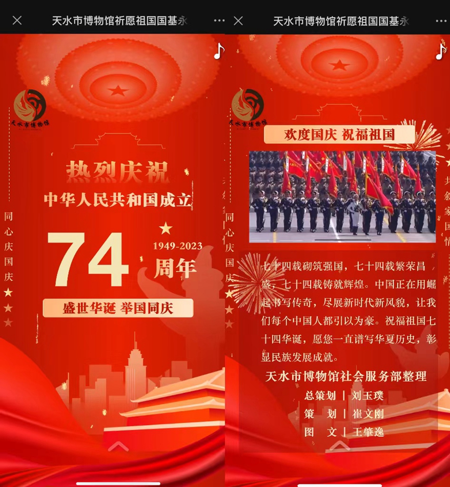 ▲國(guó)慶節(jié)宣教圖文“天水市博物館祈愿祖國(guó)國(guó)基永駐,繁榮昌盛!”