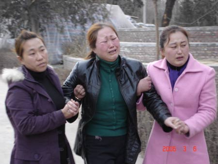 當(dāng)日下午,記者在平川區(qū)一個(gè)招待所見(jiàn)到了部分死者家屬,他們臉上布滿了悲傷的表情。一場(chǎng)礦難瞬間擊碎了五個(gè)完整的家庭。死者曾偉堂的家屬悲痛地告訴記者,曾偉堂今年37歲,已經(jīng)是4個(gè)孩子的父親了,上面還有60多歲的父母。據(jù)介紹,曾偉堂年后準(zhǔn)備返礦繼續(xù)做工,家人考慮到煤礦干活的危險(xiǎn)性,曾勸他不要再去礦上了,找個(gè)其他比較安全的工作。但因在礦上干活一個(gè)月有2000元左右的收入,為了一家人的生活,曾偉堂最后還是執(zhí)意回到了礦上,誰(shuí)知?jiǎng)偢闪艘粋(gè)月便遭此劫難。目前,他的妻子和父母還不知道他遇難的消息。死者張志誠(chéng)和曾偉堂同是景泰縣滿水灘鄉(xiāng)人,有兩個(gè)兒子,父親在多年前就已經(jīng)因病去世,母親也70多歲了,因?yàn)榧依锓浅X毟F才來(lái)到礦上打工的!艾F(xiàn)在張志誠(chéng)走了,這個(gè)家真的就像天塌了一樣,以后留下孤兒寡母可怎么生活呀!闭f(shuō)話間,在場(chǎng)的幾位家屬都泣不成聲。“今天早上,當(dāng)聽(tīng)到康寶財(cái)在礦上出事的噩耗后,他70多歲的老母親當(dāng)時(shí)就悲痛地暈了過(guò)去。”死者康寶財(cái)?shù)膸孜挥H屬說(shuō),康寶財(cái)是家里的獨(dú)生子,家里的一切全靠他來(lái)支撐。其他兩名遇難者幾乎都有著同樣的家庭境遇。