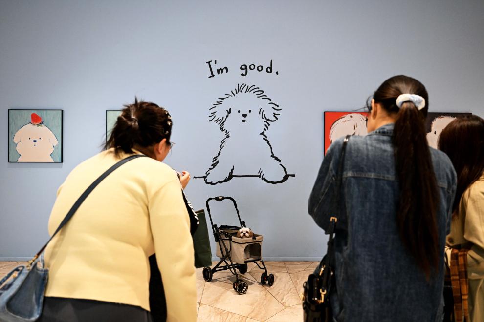 10月5日,顧客帶寵物在西安萬象城打卡。新華社記者 鄒競一 攝