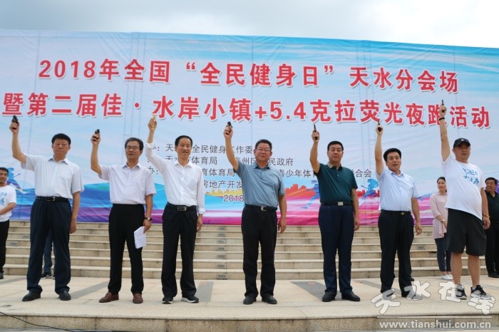 最in的音樂,最high的人群,最炫酷的夜跑。8月3日,由天水市全民健身委員會(huì)主辦,天水市體育局、秦州區(qū)人民政府承辦,秦州區(qū)教育體育局、天水市青少年體育俱樂部聯(lián)合會(huì)、甘肅永佳房地產(chǎn)開發(fā)有限公司協(xié)辦的2018年全國“全民健身日”天水分會(huì)場暨第二屆佳·水岸小鎮(zhèn)佳5.4克拉熒光夜跑活動(dòng)在天水市秦州區(qū)五里鋪橋下Happy廣場炫彩啟幕。2000余人齊聚廣場,用熒光點(diǎn)燃夜空,用速度感受激情。
