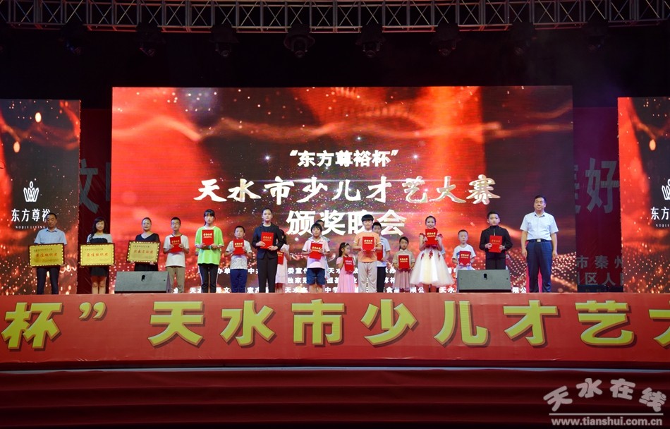 8月16日,“東方尊裕杯”少兒才藝大賽頒獎晚會在龍城廣場濃情上演。天水市政府副市長逯克宗、市政協(xié)副主席屈光平,市委宣傳部常務(wù)副部長楊清明,市教育局局長伏金祥,天水廣播電視臺黨組書記、臺長徐東明,天水廣播電視臺總編輯、副臺長張愛娟,甘肅恒基房地產(chǎn)開發(fā)有限公司總經(jīng)理張利軍等領(lǐng)導(dǎo)及嘉賓出席晚會。