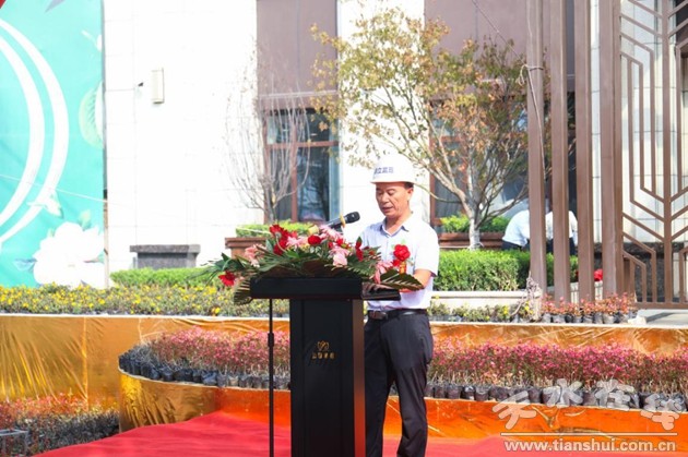 天水潤(rùn)天泉湖置業(yè)有限公司總經(jīng)理李海龍先生代表開發(fā)方發(fā)表致辭。李總對(duì)此次封頂儀式的成功舉行表示了祝賀,同時(shí)要求各參建單位要繼續(xù)加強(qiáng)協(xié)作,進(jìn)一步嚴(yán)把質(zhì)量關(guān),加強(qiáng)安全管理,加快施工進(jìn)度,確保項(xiàng)目整體工程的建設(shè)任務(wù)順利完工。