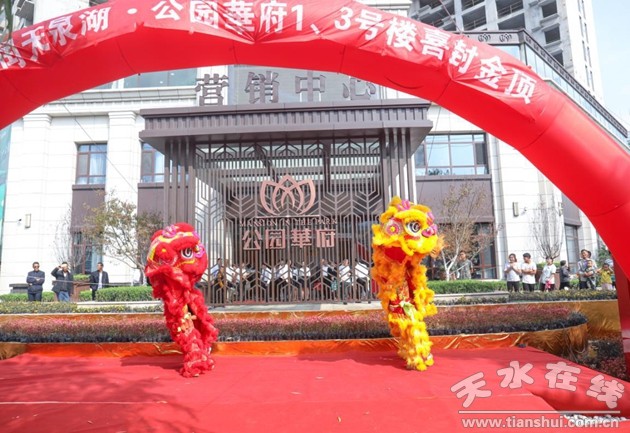 致辭結(jié)束后,天水潤(rùn)天泉湖置業(yè)有限公司總經(jīng)理李海龍及副總王繼福為醒獅點(diǎn)睛,寓意萬(wàn)事如意、再創(chuàng)輝煌,也預(yù)示著潤(rùn)天泉湖·公園華府更加美好的明天。