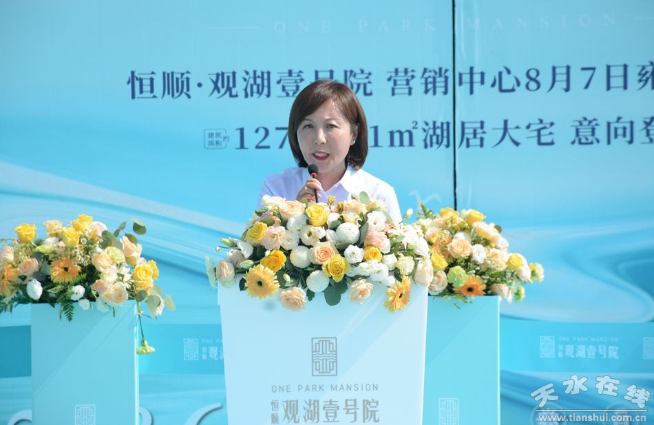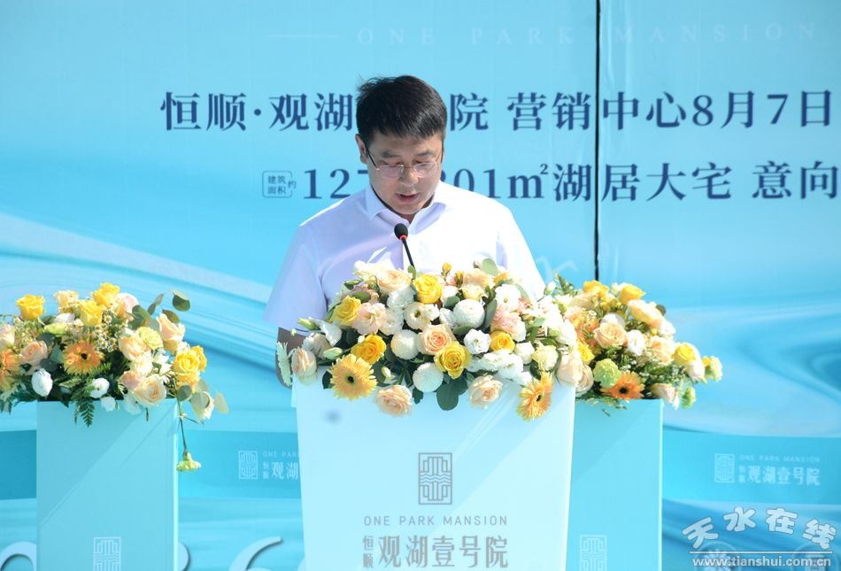 隨后,恒順集團(tuán)總裁首先上臺發(fā)表致辭,他表示,恒順地產(chǎn)十余年精耕細(xì)作,在麥積核心區(qū)打造又一個高端人居作品——恒順·觀湖壹號院,以環(huán)幕視野大平層成就城市低密瞰景高端住區(qū),未來將繼續(xù)以更優(yōu)質(zhì)的產(chǎn)品,更多元的配套,更高效的服務(wù),為天水帶來更多的城市優(yōu)質(zhì)作品!