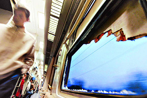 餐車和硬座車窗破碎的消息在飛快傳遞。