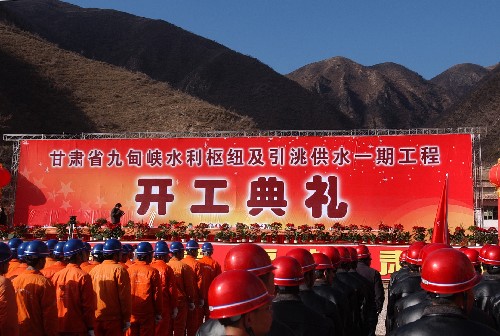 甘肅省委書記陸浩莊嚴宣布甘肅省九甸峽水利樞紐及引洮供水一期工程正式開工。