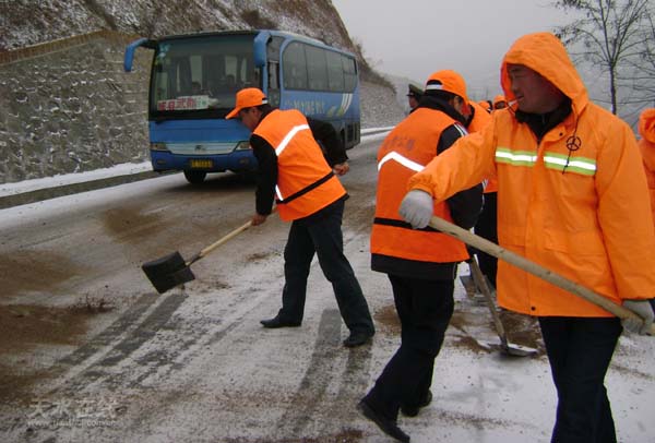 (秦州公路管理段掃雪撒砂防滑 配圖:天水在線)
