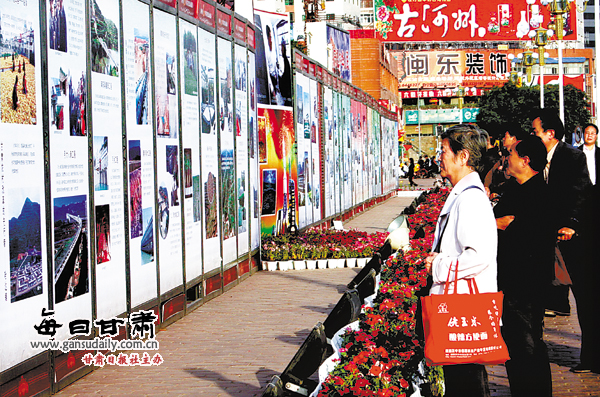 9月21日下午17時(shí),在蘭州東方紅廣場(chǎng)主席臺(tái)前,人們站成一長(zhǎng)排,觀看“新中國(guó)60年甘肅省建設(shè)成就展”展板。附近的一位住戶說,這幾天白天一直有這么多人看展覽!靶轮袊(guó)60年甘肅省建設(shè)成就展”今天進(jìn)入了第6天。成就展由省委宣傳部、省發(fā)改委、省財(cái)政廳主辦,展示了我省新中國(guó)成立60年來的成就。