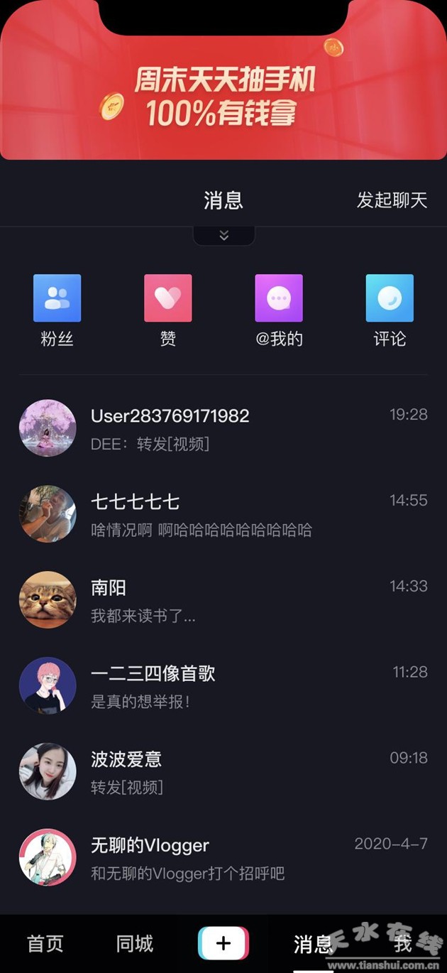 入口二:下拉抖音消息頁(yè),點(diǎn)擊活動(dòng)入口進(jìn)入活動(dòng)頁(yè)面,參與即可。