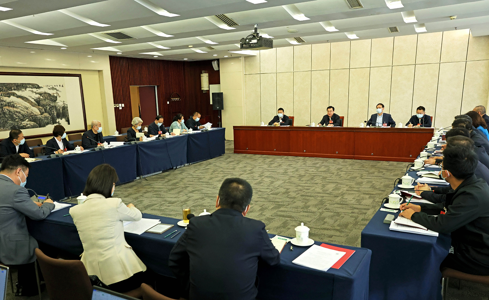 全國人大代表胡昌升、任振鶴、王賦、王可、張錦剛、嘉木樣·洛桑久美·圖丹卻吉尼瑪、雷思維、王中明、沈澗、嚴(yán)純?nèi)A等參加。