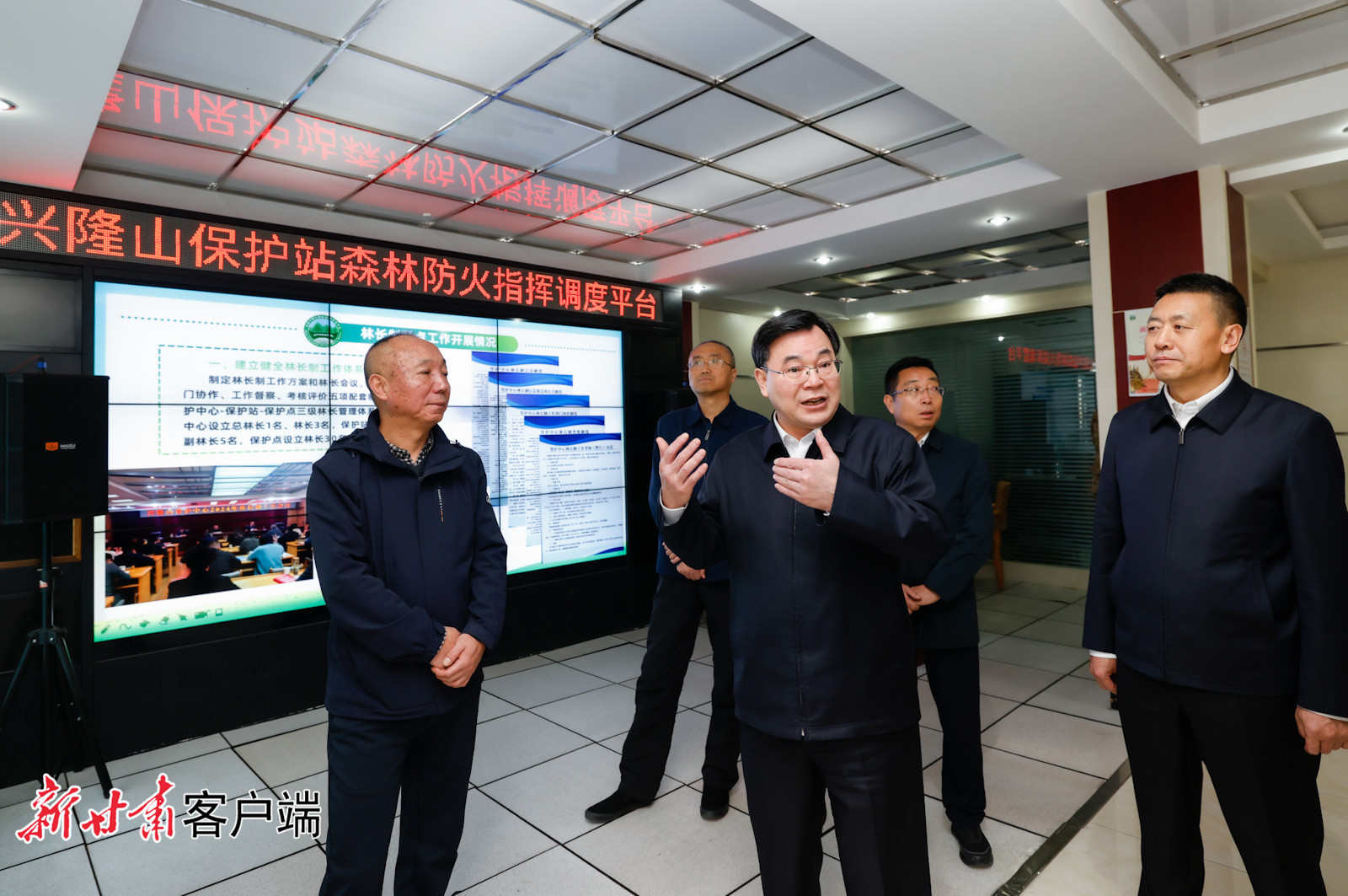 在興隆山國(guó)家級(jí)自然保護(hù)區(qū)管護(hù)中心興隆山保護(hù)站值班室,胡昌升通過(guò)視頻監(jiān)控系統(tǒng)察看護(hù)林防火、值班值守等情況,并深入林區(qū)檢查林區(qū)管護(hù)和防火工作,對(duì)堅(jiān)守一線的防火隊(duì)員表示親切問(wèn)候。他指出,當(dāng)前已進(jìn)入冬季森林防火關(guān)鍵期,容不得絲毫麻痹大意和僥幸心理。全省各級(jí)各有關(guān)方面要牢固樹(shù)立安全發(fā)展理念,始終保持高度警惕,時(shí)刻繃緊森林草原防滅火這根弦,嚴(yán)格加強(qiáng)林區(qū)管理,堅(jiān)持以防為主、防滅結(jié)合,切實(shí)做到防未、防危、防違,高度重視人為因素引起火災(zāi),立體施策防范和遏制森林火災(zāi)發(fā)生。