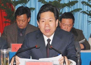 在熱烈的掌聲中,代縣長賈忠慧受縣人民政府的委托,向大會作政府工作報告。報告共分三個部分:一是2009年工作回顧;二是2010年政府工作的主要任務;三是切實加強政府自身建設。