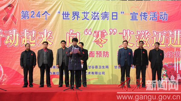 2011年12月1日是第24個“世界艾滋病日”, 甘谷縣在大什字文化廣場舉行“世界艾滋病日”宣傳活動。 今年的宣傳主題是“行動起來,向‘零’艾滋邁進、全面預(yù)防,積極治療,消除歧視”。