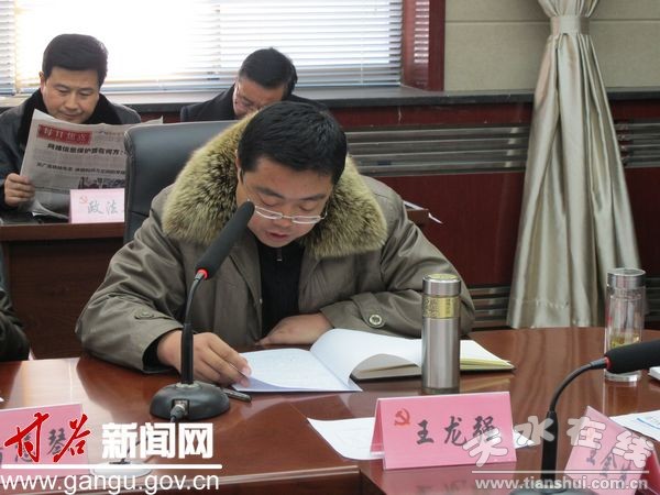 12月31日,甘谷縣委書記賈忠慧主持召開(kāi)縣委中心組學(xué)習(xí)會(huì)議。會(huì)議傳達(dá)學(xué)習(xí)了中央經(jīng)濟(jì)工作會(huì)議精神、中央農(nóng)村工作會(huì)議精神、王岐山同志在中央紀(jì)委監(jiān)察部機(jī)關(guān)全體黨員干部會(huì)上的重要講話精神、天水市政府工作報(bào)告文件精神、天水市政協(xié)會(huì)議精神。