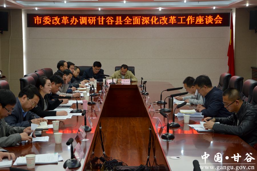4月15日,天水市委改革辦專職副主任趙旭耀帶領調(diào)研組來甘谷縣調(diào)研全面深化改革工作?h委常委、紀委書記謝輝及縣委辦負責人陪同調(diào)研。