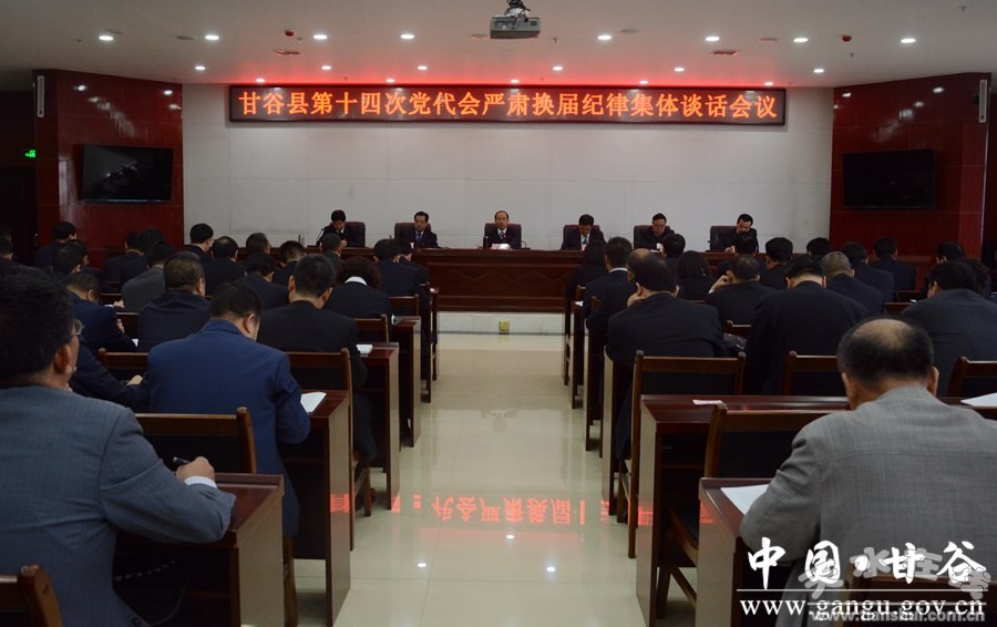 10月15日,甘谷縣召開縣第十四次黨代會嚴(yán)肅換屆紀(jì)律集體談話會議?h委書記賈忠慧,縣人大常委會主任令建民,縣委副書記、縣長申君明,縣政協(xié)主席馬驥及縣四大組織在家領(lǐng)導(dǎo)出席會議;全體黨代表參加會議。