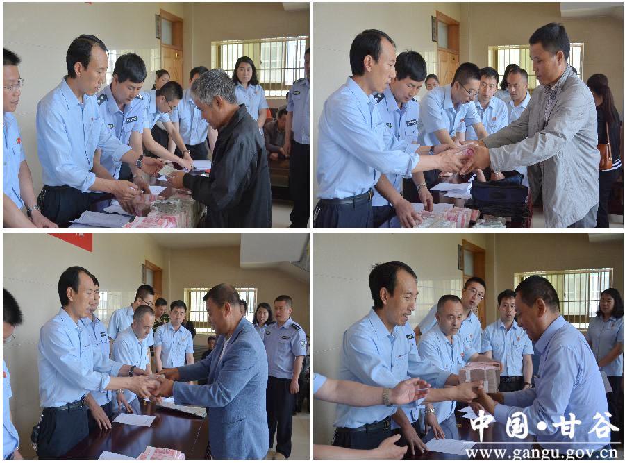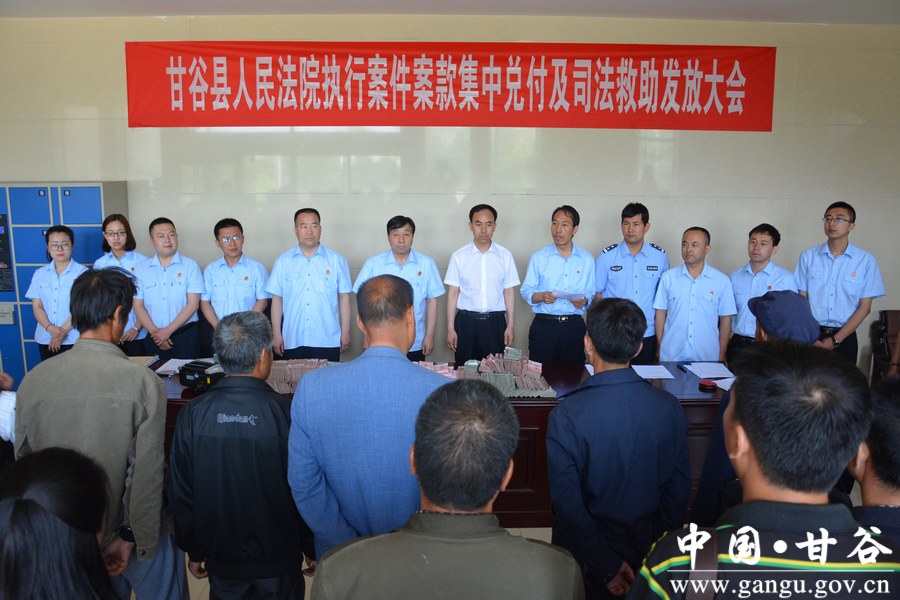 6月8日,甘谷縣人民法院舉行執(zhí)行案款集中兌現(xiàn)及司法救助發(fā)放大會(huì),為30位案件當(dāng)事人及13位生活困難當(dāng)事人發(fā)放執(zhí)行案款、司法救助款239萬元?h委常委、政法委書記馮全敬,縣人民法院院長王建軍出席發(fā)放儀式。