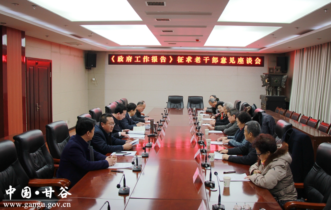12月14日,甘谷縣委常委、常務(wù)副縣長(zhǎng)孟曉龍主持召開(kāi)《政府工作報(bào)告》征求老干部意見(jiàn)座談會(huì)。專題聽(tīng)取離退休老干部對(duì)《政府工作報(bào)告(征求意見(jiàn)稿)》的意見(jiàn)和建議。 副縣長(zhǎng)馬福勝參加座談會(huì)。