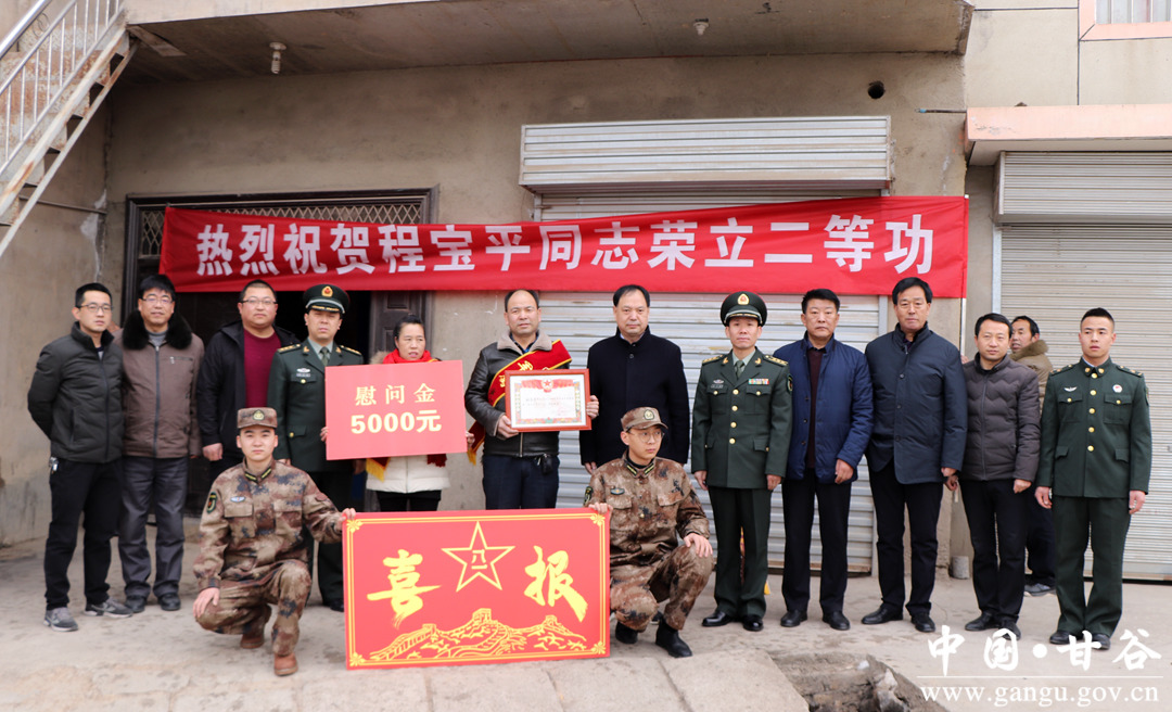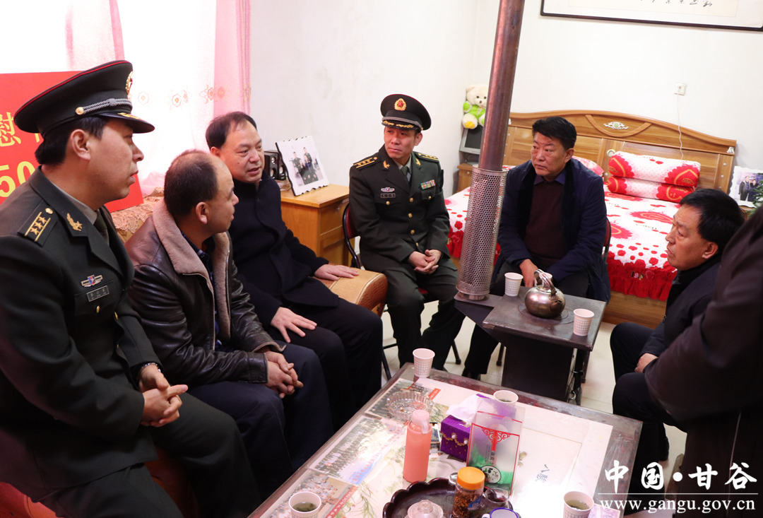 1月20日,甘谷縣委常委、副縣長王志高和部隊(duì)代表一行來到八里灣鎮(zhèn),對榮立二等功現(xiàn)役軍人程保平的家屬進(jìn)行走訪慰問,縣人武部、退役軍人事務(wù)局、八里灣鎮(zhèn)等相關(guān)負(fù)責(zé)人一同慰問。