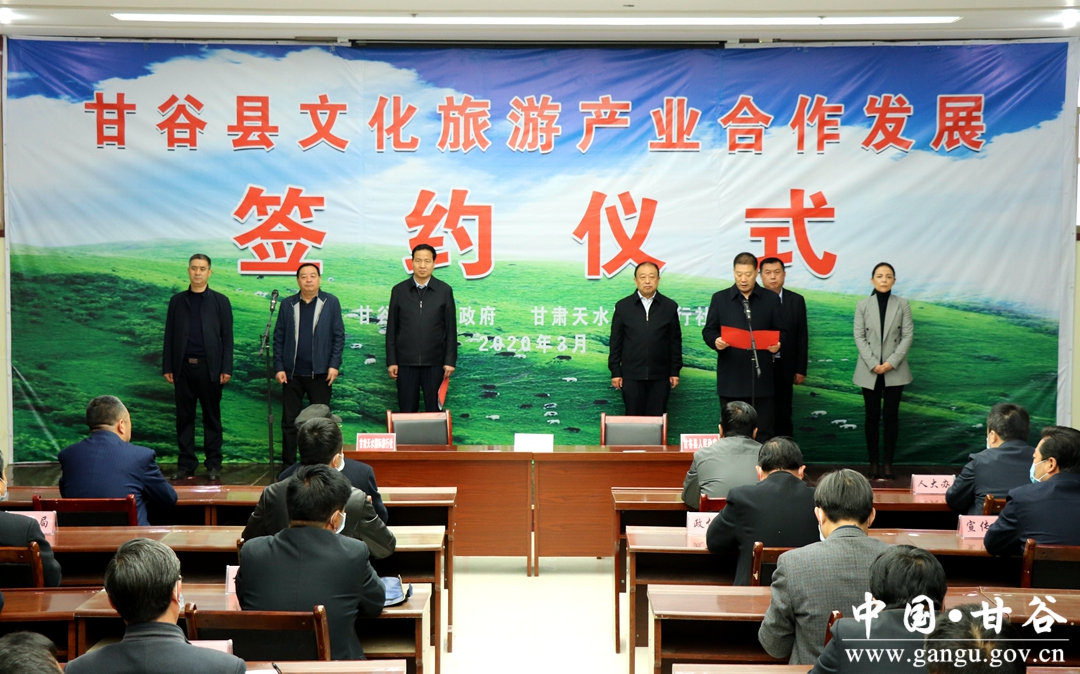 3月19日,甘谷縣舉行文化旅游產(chǎn)業(yè)合作發(fā)展簽約儀式,市文旅局黨組書記、局長李玉進(jìn),甘肅天水國際旅行社總經(jīng)理李強,縣委副書記、縣長吳健,縣四大組織分管領(lǐng)導(dǎo)出席簽約儀式?h直有關(guān)部門主要負(fù)責(zé)人,古坡鎮(zhèn)科級以上干部參加簽約儀式。