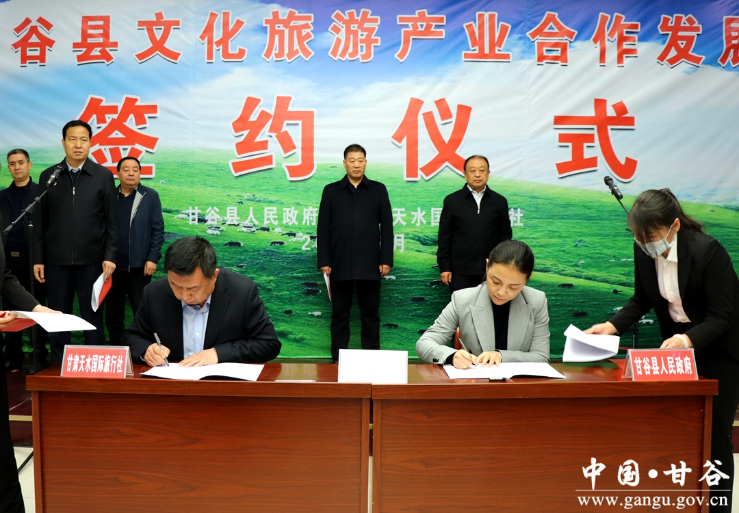 (副縣長高麗代表甘谷縣人民政府與天水市國際旅行社總經(jīng)理李強簽約)