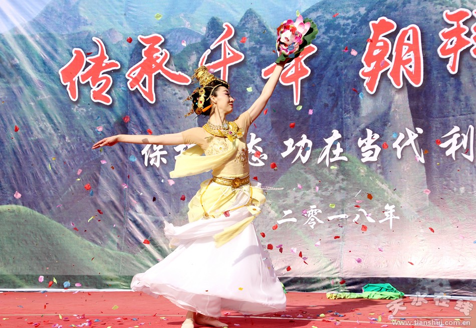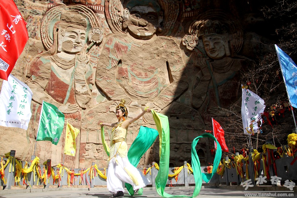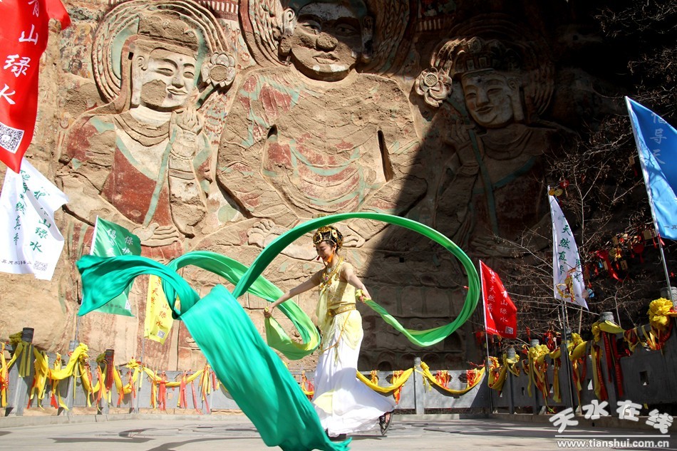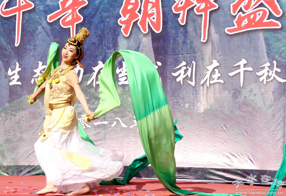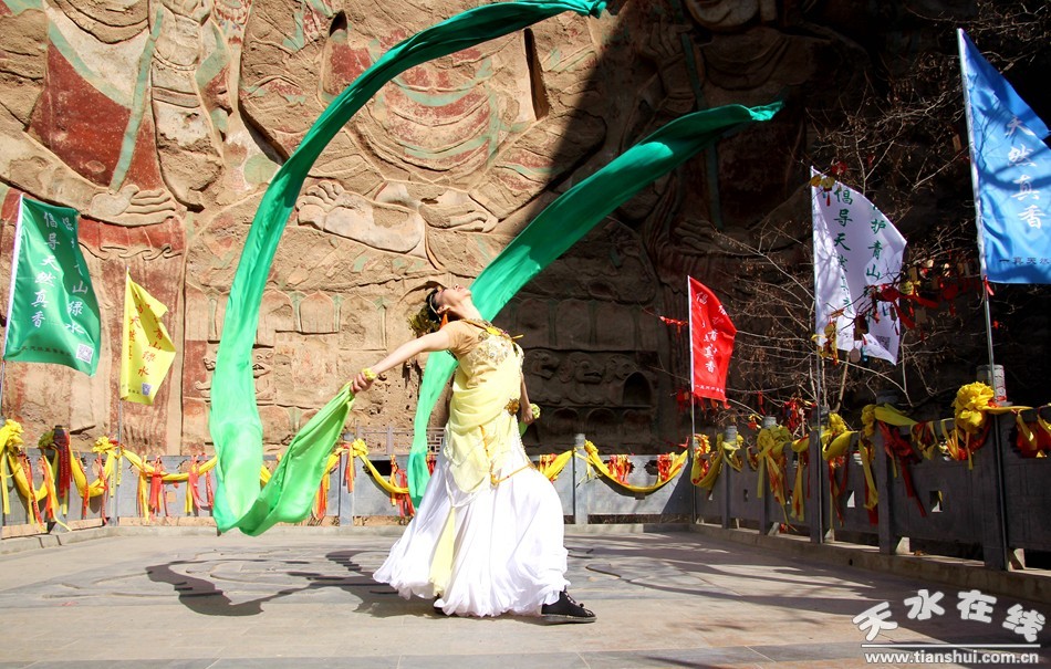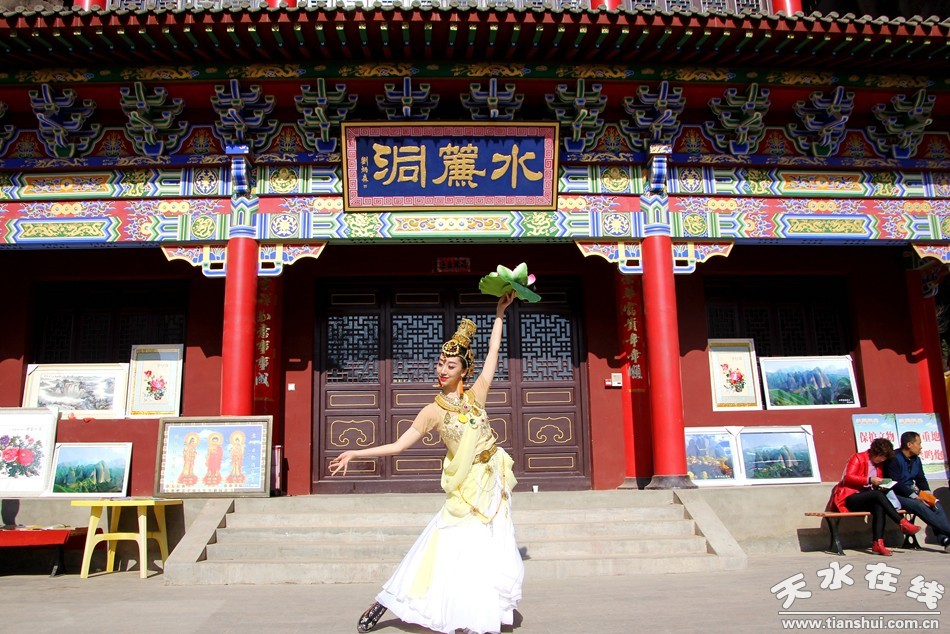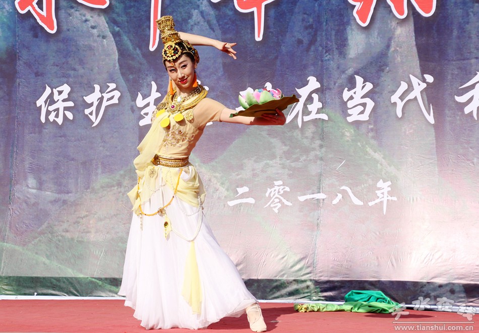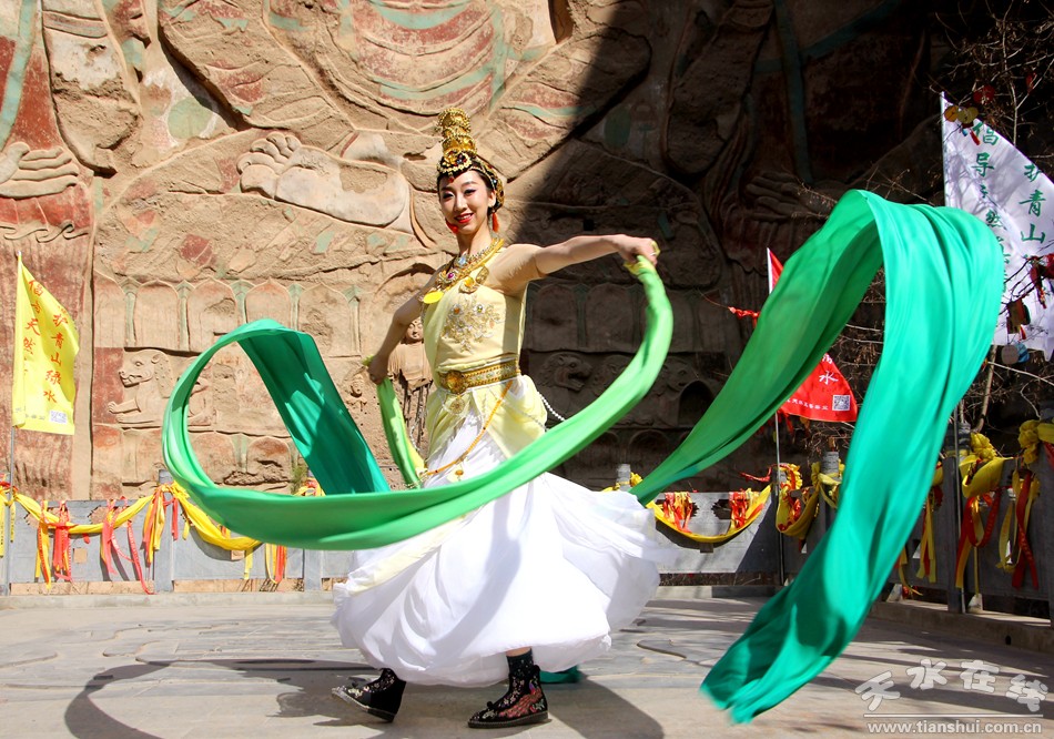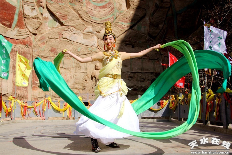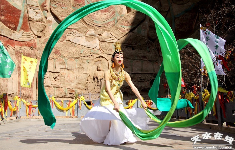天水在線報(bào)道 3月25日,由北京一真天然真香善業(yè)發(fā)起的“保護(hù)青山綠水、倡導(dǎo)文明旅游”大型公益活動(dòng)在武山縣水簾洞景區(qū)舉行,天水白娃娃燁冉應(yīng)邀參加并表演敦煌舞。