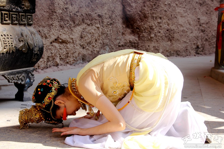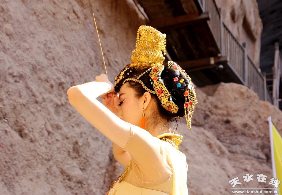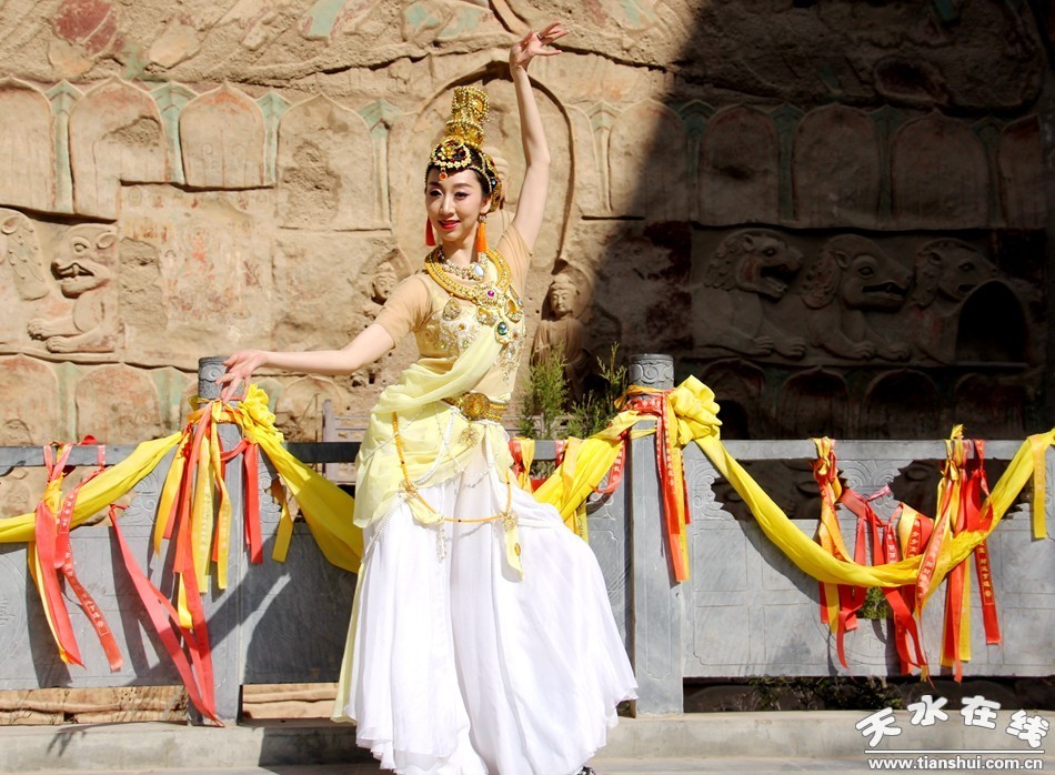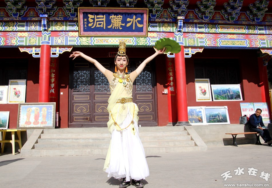 (天水白娃娃燁冉在水簾洞表演敦煌舞)