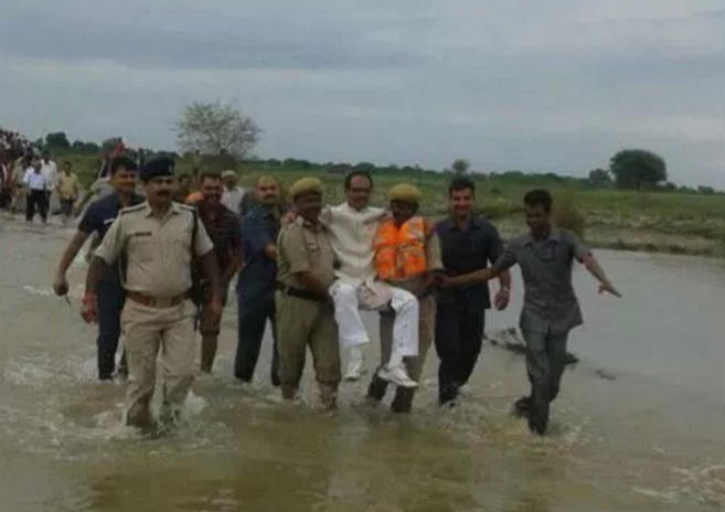 ·印度高官視察洪災(zāi)拒絕踩水被抬著走 水位僅及踝深(圖
