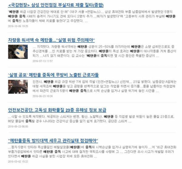 據(jù)韓國(guó)《韓民族日?qǐng)?bào)》透露,兩名中毒員工表示公司以及相關(guān)部門自始至終未向他們提供預(yù)防甲醇的指導(dǎo)或提醒。另外,據(jù)相關(guān)人士透露,共同民主黨議員韓貞愛曾就韓勞動(dòng)部今年2至3月份對(duì)全國(guó)3100多家甲醇管理不善企業(yè)的調(diào)查結(jié)果進(jìn)行了分析,發(fā)現(xiàn)約97.5%的相關(guān)企業(yè)或是沒有對(duì)公司員工進(jìn)行必要的健康針對(duì)措施,或是沒有對(duì)工作環(huán)境進(jìn)行檢測(cè)。
