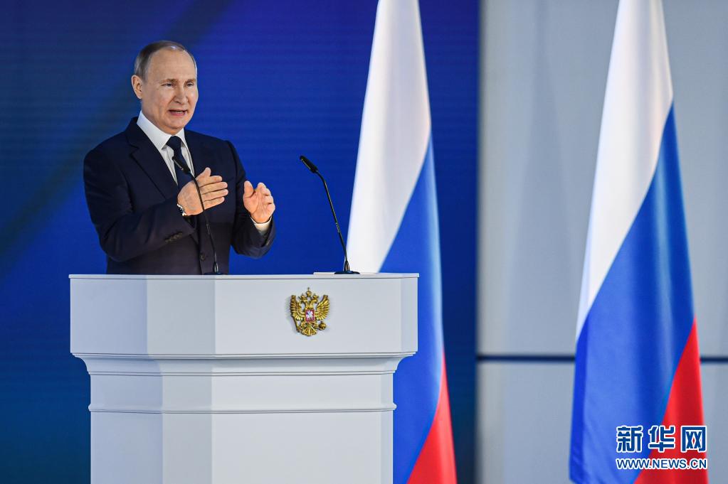 4月21日,俄羅斯總統(tǒng)普京在莫斯科發(fā)表國情咨文。新華社發(fā)(葉甫蓋尼·西尼岑攝)