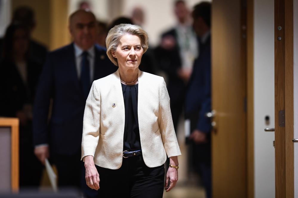 2025年3月6日,在比利時(shí)布魯塞爾,歐盟委員會(huì)主席馮德萊恩在歐盟特別峰會(huì)上。新華社記者彭子洋攝