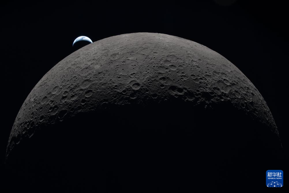 這是從執(zhí)行“阿耳忒彌斯2號(hào)”載人繞月飛行測試任務(wù)的“獵戶座”飛船上拍攝的地落(4月6日攝)。新華社發(fā)(美國國家航空航天局供圖)