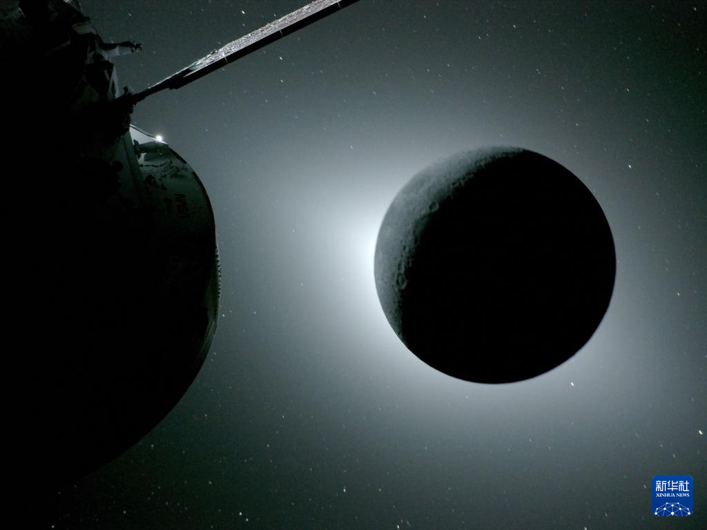 這是從執(zhí)行“阿耳忒彌斯2號(hào)”載人繞月飛行測試任務(wù)的“獵戶座”飛船上拍攝的月球遮住太陽的時(shí)刻(4月6日攝)。新華社發(fā)(美國國家航空航天局供圖)