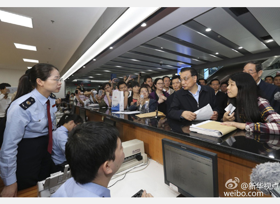 李克強(qiáng)寄望自貿(mào)區(qū)辦事群眾扮好三個(gè)“角色”