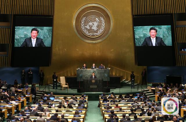 圖:習(xí)近平出席第70屆聯(lián)合國大會一般性辯論并發(fā)表重要講話(新華社記者龐興雷攝)