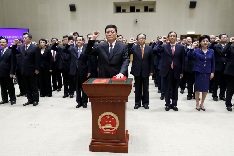 根據(jù)《全國人民代表大會常務(wù)委員會關(guān)于實行憲法宣誓制度的決定》和《國務(wù)院及其各部門任命的國家工作人員憲法宣誓組織辦法》,今年以來國務(wù)院任命的38個組成部門、直屬特設(shè)機構(gòu)、直屬機構(gòu)、辦事機構(gòu)、直屬事業(yè)單位的55名負責(zé)人依法進行憲法宣誓。