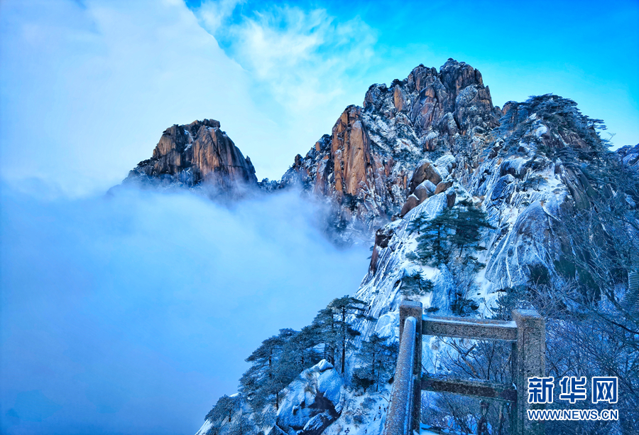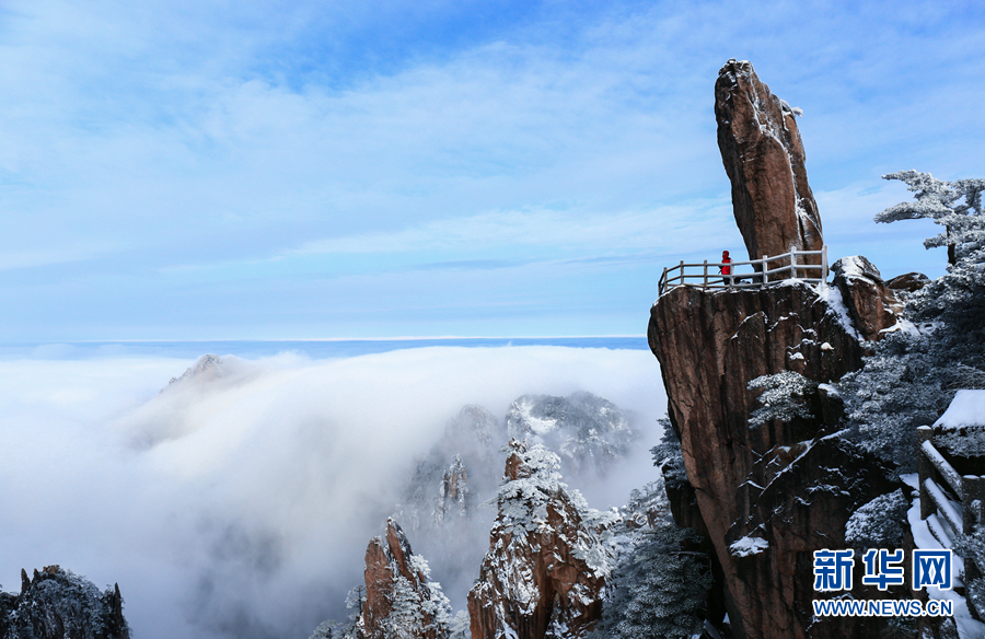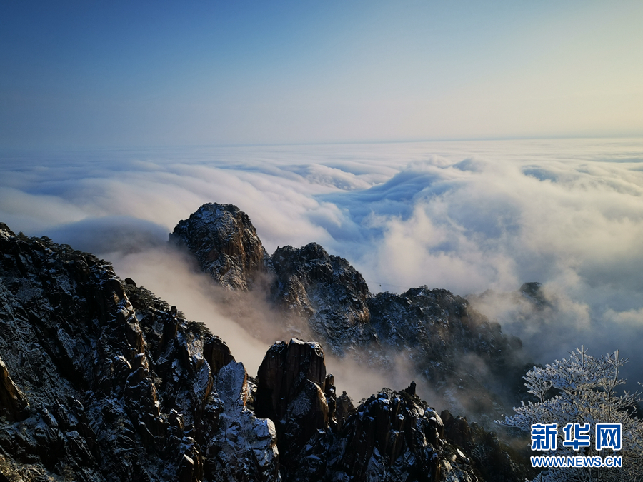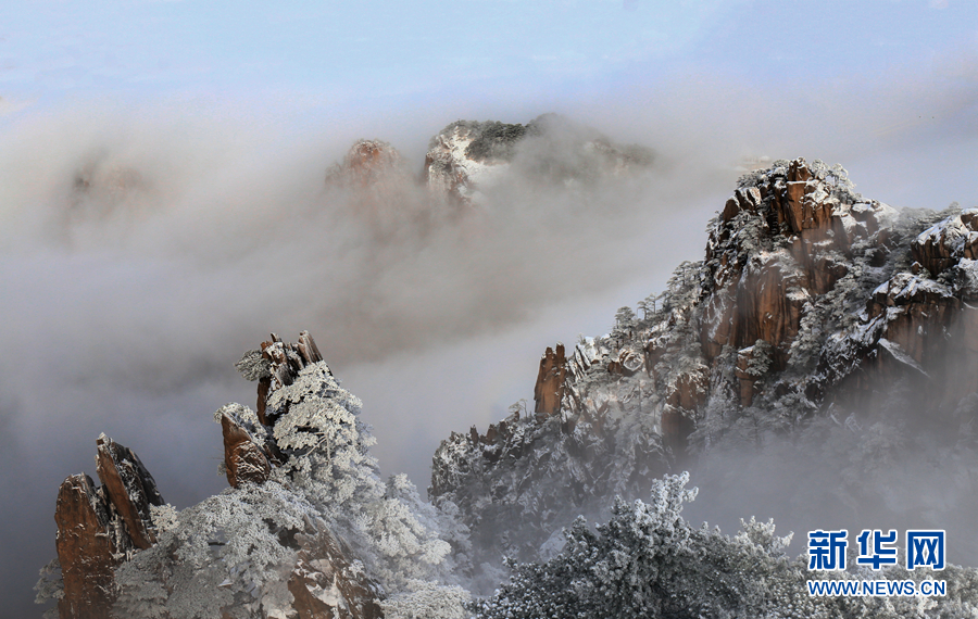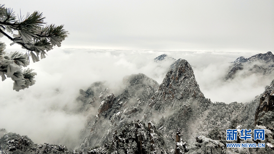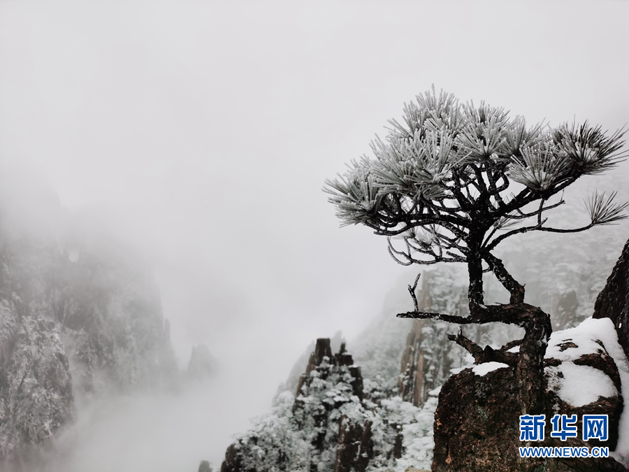 12月14日拍攝的黃山風景區(qū)雪景,晶瑩剔透的雪凇裝扮著黃山,就像一幅立體的水墨畫。新華網(wǎng)發(fā)(王新來 攝)