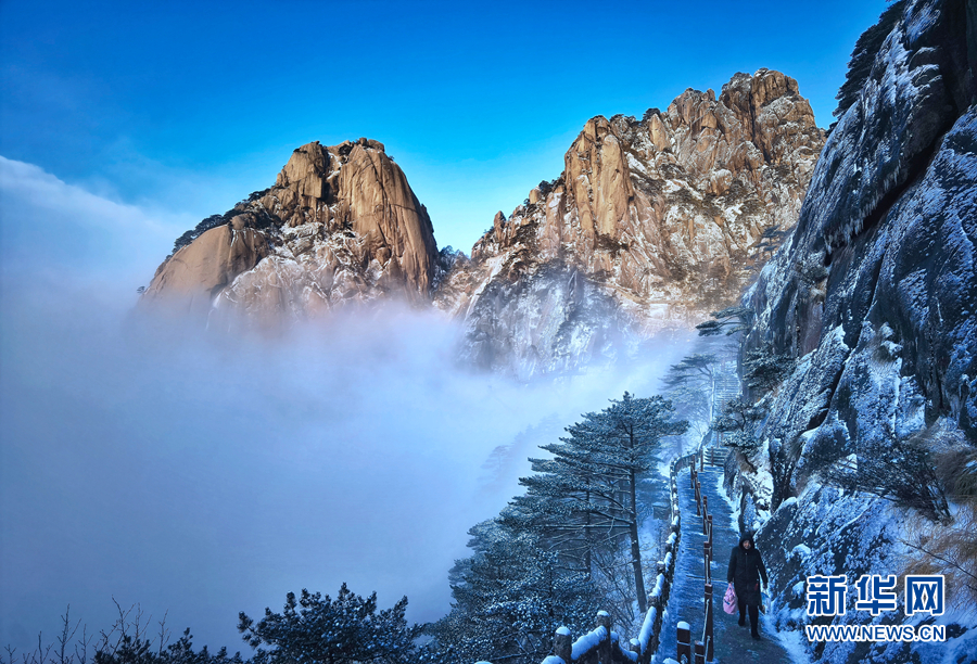 12月14日拍攝的黃山風景區(qū)雪景,晶瑩剔透的雪凇裝扮著黃山,就像一幅立體的水墨畫。 當日,受冷空氣影響,黃山風景區(qū)迎來降雪,白雪將群峰和奇松怪石妝點得銀裝素裹,云海在山間若隱若現(xiàn),宛如一幅壯觀的中國畫長卷。新華網(wǎng)發(fā)(段雪峰 攝)